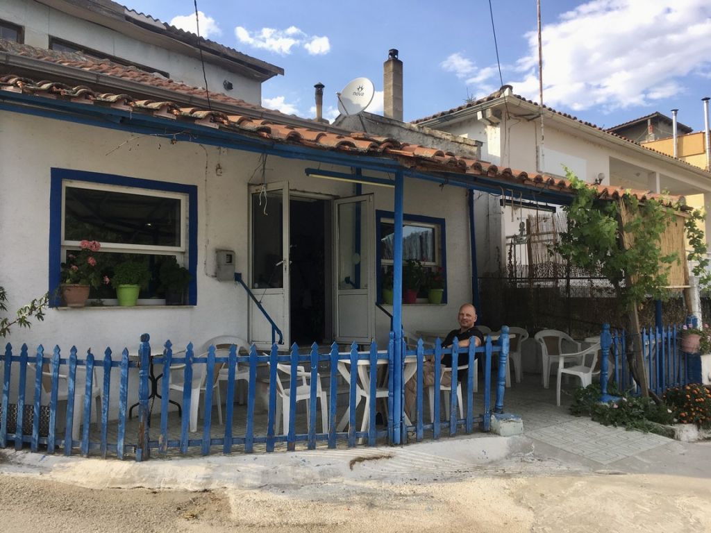 Google sei Dank fand ich in einem Sackgassen-Dorf eine Taverne, zu der sich wahrscheinlich noch nie ein Tourist verirrt hatte: die Oma dort war etwas überfordert mit unserem Auftauchen, aber verstand, wir wollten „irgendetwas zu essen“. Sie zauberte los. Es gab natürlich Salat mit Feta, gegrillte Auberginen, gegrillte Zucchini und frische Calamares. Und Jan bekam seinen griechischen Frappee, der die Latte ganz schön hoch hängte, so gut war der!