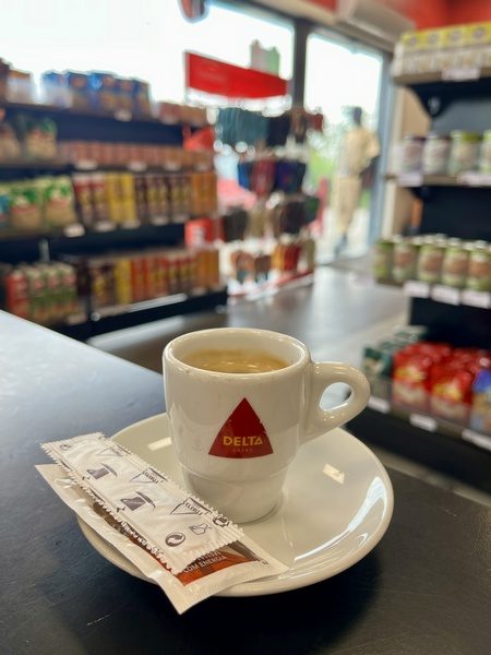 Am nächsten Morgen mussten wir noch eine Versicherung abschließen, denn Angola ist nicht Mitglied in irgendeiner „farbigen Karte“ wie der grünen Karte in Europa, der braunen Karte in Westafrika oder der rosa Karte in Zentralafrika. Dann düsten wir los nach Luanda. Wieder 420km, wieder nur geradeaus. Und wieder der Wind von der Küste, der von schräg vorne bläst, wie schon entlang der Küste von Marokko und Mauretanien. Nervig, langweilig, unangenehm. Aber die Straße, erst Autobahn, dann einspurig, war perfekt und die Landschaft wechselte abrupt von Kongobecken zu „Senegal“. Nur schöner als Senegal: Baobabs überall! Ob es in Angola auch Baobab Saft gibt wie im Senegal? Unsere erste Tankstelle in Angola zeigte, wie sehr wir in „Anfänger-Afrika“ angekommen waren: es gab nicht nur Benzin, sondern auch einen gut sortierten Tankstellenshop mit Sitzecke und… Kaffee! Eine richtige Bistrotheke mit echter Kaffeemaschine! Delta Kaffee sogar und richtig lecker. Was ein Luxusleben lag nun vor uns!