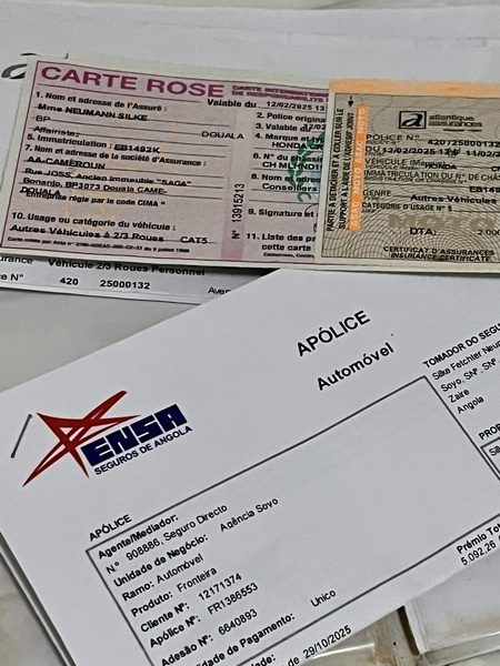 Am nächsten Morgen rollten wir traurig aus dem Kongo raus und nach Angola hinein. Dass man für Angola kein Visum braucht, war das einzig Unkomplizierte an der Grenze. Länger haben wir in Afrika nirgends für einen Grenzübergang gebraucht. Buchstaben wurden gemalt und Zettel hin und her geschoben oder gingen auf den 2m von Kopierer bis Schreibtisch verloren, Papiere wurden vertauscht. Nach über zwei Stunden hatte ich einen anderen Nachnamen, wurde steuerlich in den Niederlanden veranlagt und fuhr eine KTM statt Honda. Jan, neuerdings auch aus Holland, hat jetzt einen anderen Vornamen und irgendwo eine Honda aufgetrieben: die einfache Aufgabe, Name und Motorrad vom Fahrzeugschein abzuschreiben, war zu viel. Es war eine Comedyshow und wir mittendrin. Das Lustigste war der Zöllner, der sich von seiner Kollegin dabei fotografieren ließ, wie er so tat, als ob er unser Gepäck kontrollierte. Er zog eine Show ab, notierte mit ernster Miene Luftbuchstaben auf ein Klemmbrett, posierte mit wichtigem Blick mit Händen am Gepäck und sie fotografierte die Szene aus allen möglichen Blickwinkeln. Wo waren wir da nur gelandet?