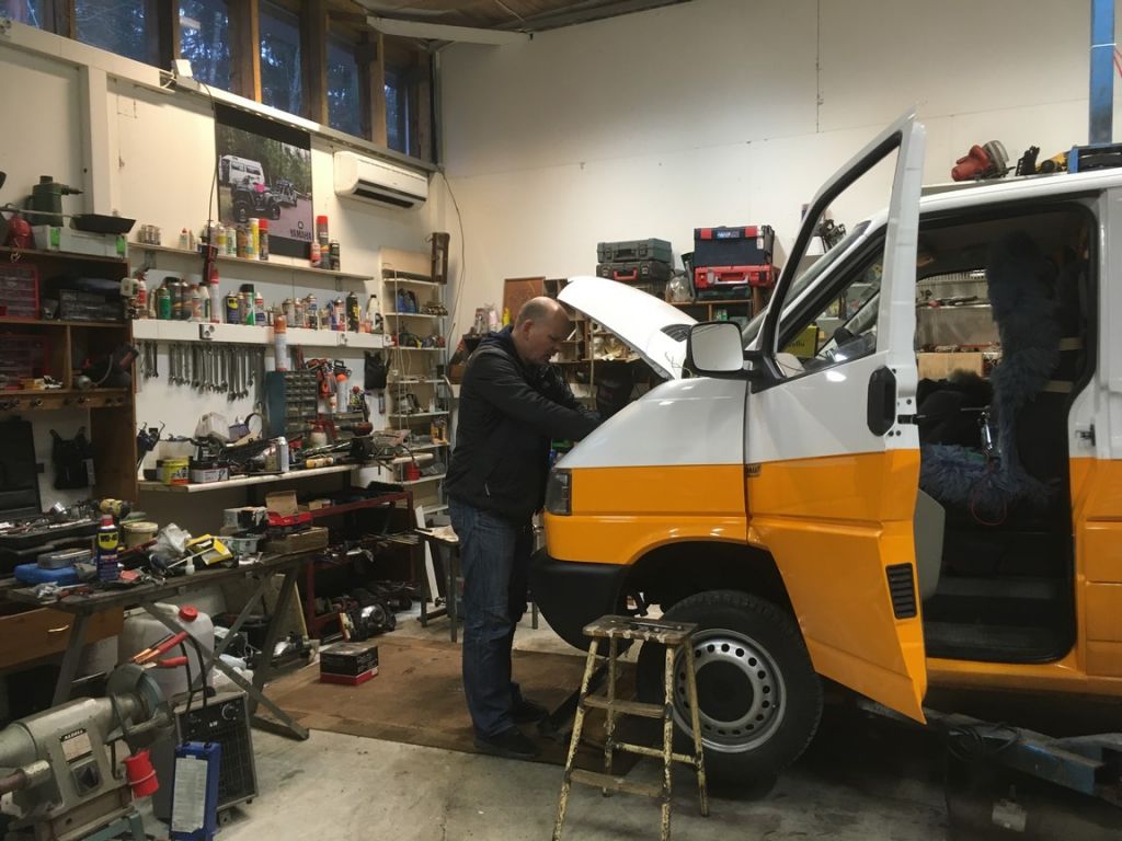 Drei Tage bastelten wir zu dritt an und in Kittymobil: die Schiebetür lag weich gepolstert auf dem Fußboden, damit ich das Regal bauen konnte, Jan und Jani montierten zusammen den neuen Motorschutz, da der Originale leider beim letzten Ölwechsel von unserem kasachischen Fahrer in Kasachstan liegengelassen wurde, Jan verpasste Kittymobil für den skandinavischen Winter neue LED H4 Birnen, ich orangefarbene, EU-legale Blinkerbirnchen (statt der weißen kasachischen) und Jani hatte aus seinem unerschöpflichen Fundus an T4 Teilen noch so einige „Goodies“ parat, wie zum Beispiel ein paar Zentimeter neue Türdichtung oder eine neue Dichtung am Scheibenwischwasserbehälter.