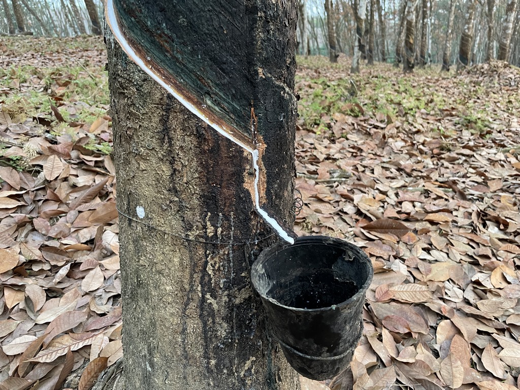 Wir waren auf der zweitgrößten Kautschukplantage des Landes zu Gast. Europäisch und nicht amerikanisch, was bedeutet, dass für die EU-Zertifizierung andere Standards als bei den Amerikanern herrschen, was zum Beispiel die Anbaubedingungen betrifft. Kautschuk ist in der Öffentlichkeit nicht so heiß diskutiert wie Palmöl und so wussten wir nur, dass es seit kurzem nicht erlaubt ist, Produkte in die EU zu importieren, für deren Anbau oder Herstellung gerodet wurde. Die von uns besuchte Plantage ist aus den 1950er Jahren und produziert unter anderem für Nokian, Michelin, Continental und andere bekannte Reifenhersteller.