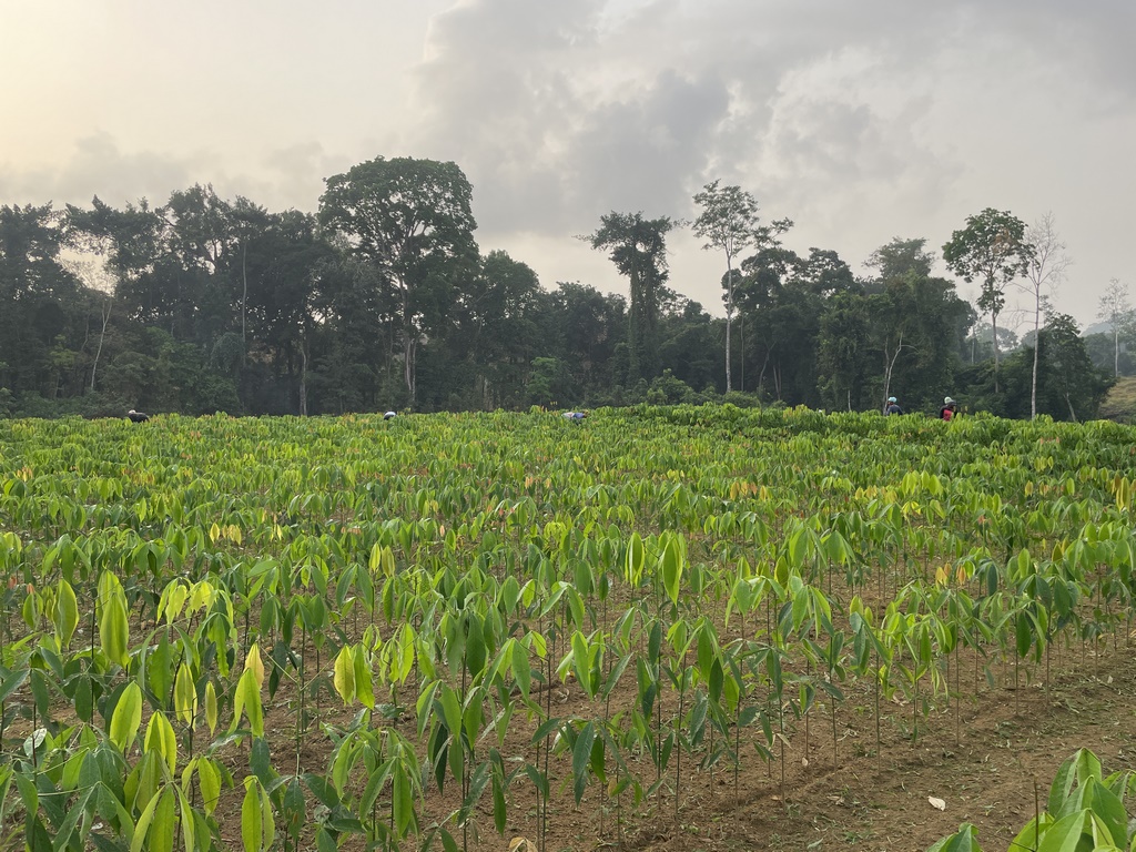 Der Dampf wird mit dem Holz erzeugt, das beim Erneuern alter Baumbestände anfällt. Ein Teil der Bäume wird verfeuert, ein anderer Teil der Bäume in 3m langen Stücken direkt an Ort und Stelle liegengelassen, um den Boden zu düngen. Das Holz verrottet im extrem feuchten Tropenklima hier sehr schnell. Damit der Boden im nächsten Jahr bepflanzbar wird und der Prozess schneller geht, werden zusätzlich Bodendecker gesät, unter denen das Holz besonders gut verrottet und die zusätzlich Stickstoff im Boden binden. Ein Kreislauf beginnt von neuem…