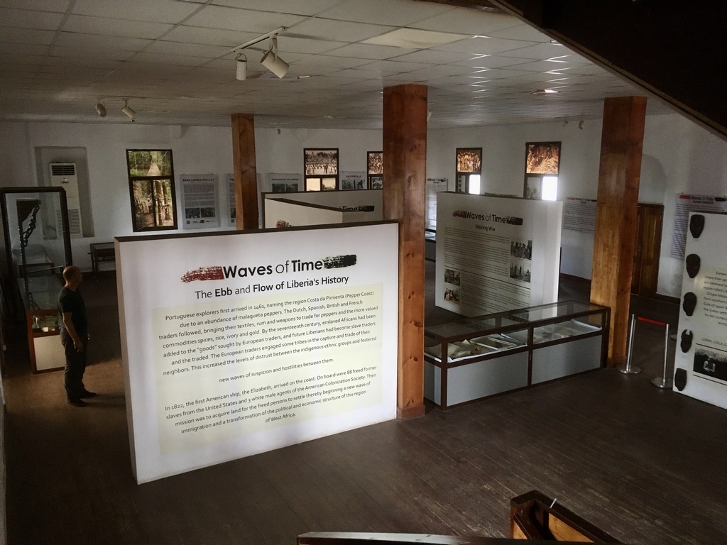 Wie gut uns Monrovia gefällt, habt Ihr ja im letzten Blogpost schon lesen können: überraschend entwickelt, extrem sauber und aufgeräumt und positiv lebendig. Wir blieben sechs Tage in der Stadt, die wir Tag für Tag besser kennenlernten. Das Nationalmuseum war eine weitere Überraschung Monrovias an uns: auf drei Stockwerken wird die Geschichte Liberias erklärt und man bekommt sogar eine persönliche Führung von Vitrine zu Vitrine. Weil wir ja in Woche zwei in Liberia immer noch kein Wort Englisch verstehen, gingen die meisten Erklärungen der motivierten Frau an uns vorbei, aber wir nahmen uns die Zeit, das gesamte Museum nochmal ohne sie „abzuarbeiten“ und die wirklich gut gemachten Informationstafeln zu studieren.