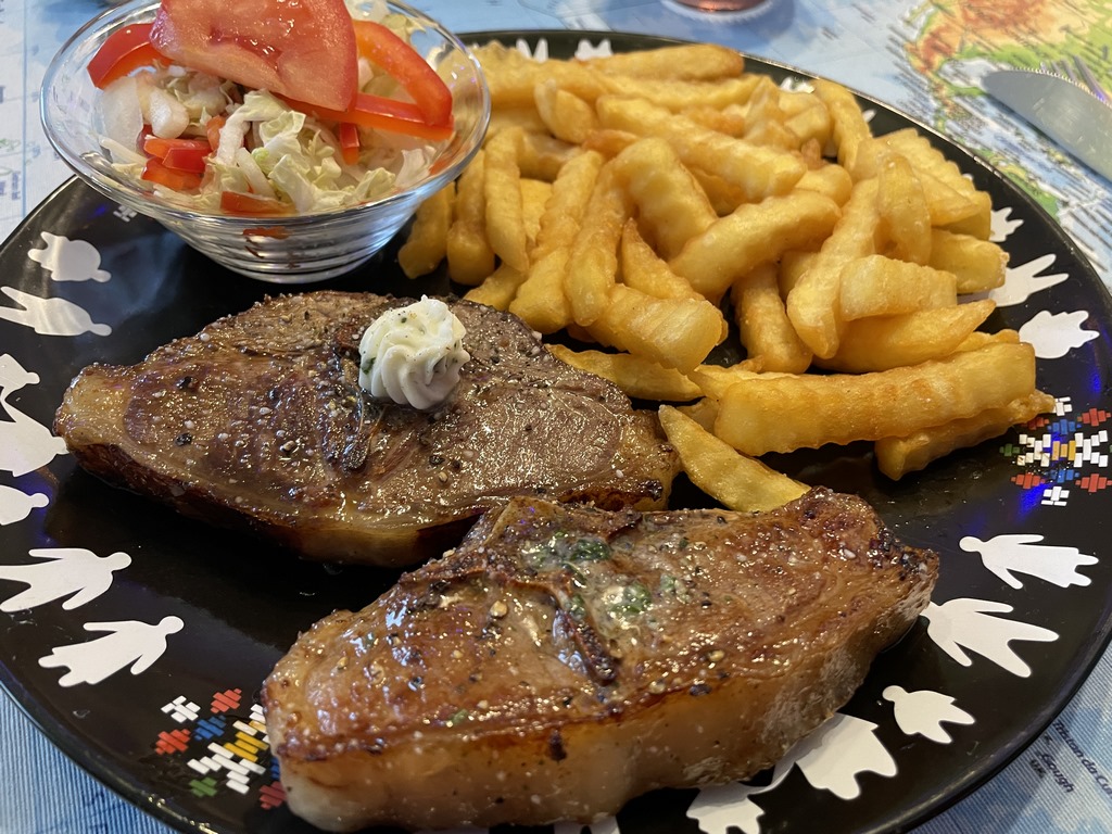 Die Portion Lamm mit Pommes und Salat kostete 25€ und das war absolut angemessen. Dafür, dass in Grönland fast alles aus Dänemark teuer importiert werden muss, fanden wir insgesamt das Preisniveau in Supermarkt und Restaurants völlig gerechtfertigt. Das Gefühl, dass Grönland zu teuer sei, hatten wir nicht. Aber vielleicht findet in touristischen Regionen genau das statt, was in Island passiert: Touristenpreise.