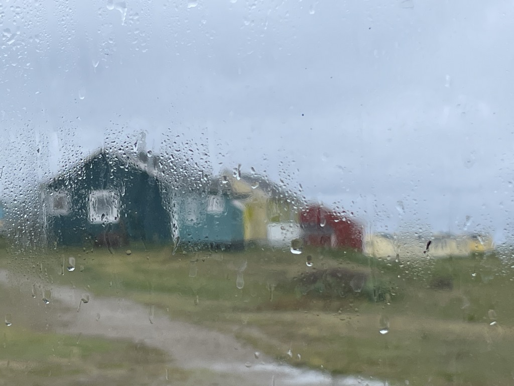 Das „Küchenzelt“ war ein großes „Domo“, in dem gekocht und gegessen wurde. Im Gegensatz zu den Schlaf-„Domos“ hatte das Küchenzelt jedoch keine zweite Plane als Innenzelt, sodass schon am ersten Abend das Kondenswasser von der Plane auf uns herunter tropfte. Doch weil es schon wieder erst gegen 22 Uhr Essen gab, war das egal, denn die Mägen knurrten und alle waren müde. Am nächsten Tag regnete es. Die Wanderung zu einem See „mit Chance auf Karibu-Sichtung“ lockte Jan und mich nicht aus unserem „Domo“ und auch der Spanier blieb im Camp. Wir hatten in Nordamerika schon Karibus aus nächster Nähe gesehen und „noch ein See“ war eine viertstündige Wanderung in Regen und Nebel nicht wert. Ein paar Stunden Auszeit taten gut. Wegen des Regens wurde im Küchenzelt nicht gelüftet und so begannen wir, in Regenjacken zu leben: draußen und auch drinnen, denn es tropfte immer schlimmer von der Decke. Trotzdem, und das muss man der Gruppe hoch anrechnen, beschwerte sich niemand über das Wetter, denn dafür kann keiner was. Nur die Ausrüstung war kritikwürdig.