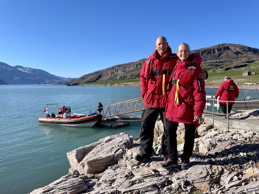 Der Flug nach Grönland war traumhaft schön: nach drei Tagen eiskaltem Regenwetter in Reykjavik freuten wir uns über blauen Himmel und beste Sicht aufs Eis über Grönland. Nach der Landung in Narsasaq erwartete uns schon jemand vom Reiseveranstalter und händigte uns Schwimmweste und dicke, rote Parkas aus. Darin würden wir die nächsten zwei Wochen „wohnen“. Reiseveranstalter? Ja. Es gibt Destinationen, wie zum Beispiel letztes Jahr auch Socotra (Jemen), die sind als Individualreisende auf eigene Faust nur, wenn überhaupt, mit extrem dickem Geldbeutel möglich oder eben mit einer organisierten Gruppenreise (und wesentlich dünnerem Geldbeutel). Unsere Gruppe bestand aus 11 Gästen: eine spanische Tante mit ihrem 19-jährigen Neffen, zwei deutsche Freundinnen, ein katalanisches Pärchen, eine Italienerin, ein spanischer Biologe, unser Freund Edgar und wir. Allesamt reiseerfahren und outdoorbegeistert.