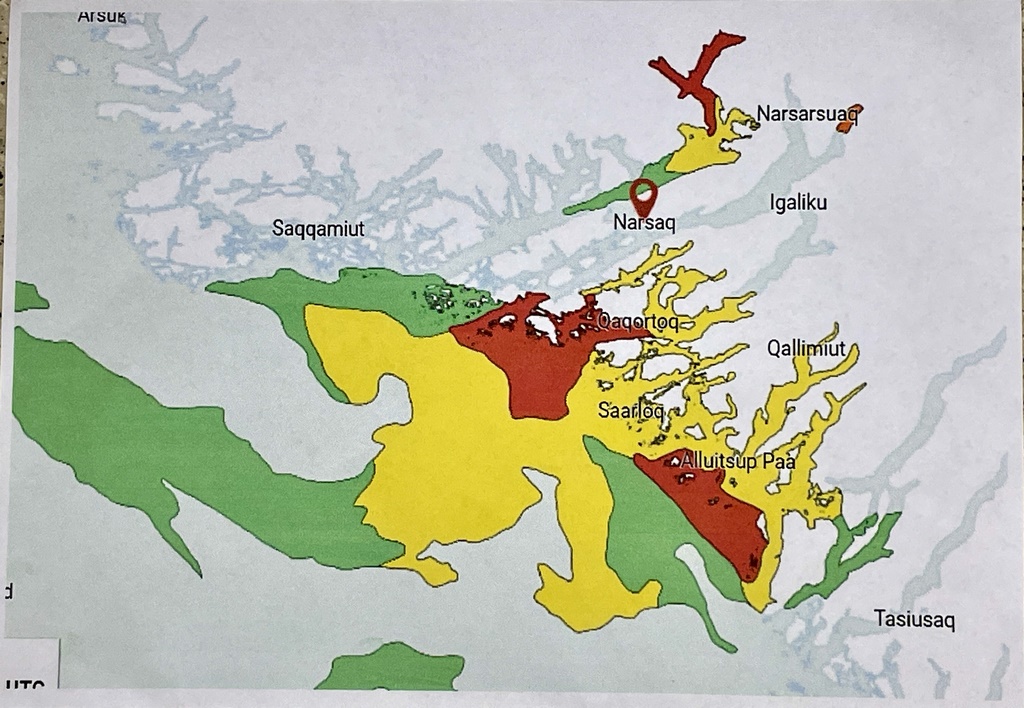 Abends besuchte uns die Leiterin der lokalen Agentur, um uns die schlechten Nachrichten persönlich zu bringen: wegen des vielen Eises war die geplante Weiterreise in den Süden des Südens nicht möglich. Wir, die wir das schon vor Abflug aus Island gewusst hatten, hatten uns sowieso schon gewundert, warum Veranstalter und Reiseleiter eine Woche lang so taten, als gäbe es kein Problem. Nun legten sie die Karten auf den Tisch und boten „Plan B“: Wir sollten 2,5 Stunden mit dem Zodiac gen Norden gebracht werden, wo ein Isländer eine Karibu-Farm betreibt und wo wir campen könnten. Doch zuvor war ein Wandertag rund um Narsaq geplant, erst nach zwei Nächten im Hostel sollte es weitergehen. Klang für uns grundsätzlich gut, doch wussten wir, dass im Sommer auf einer Karibufarm keine Karibus sind und es dort wenig zu sehen geben würde.