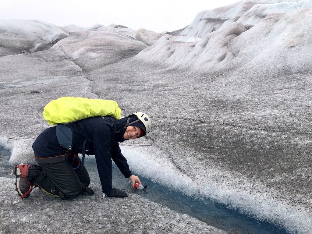 Wie auch in Island ist auch Leitungswasser nichts anderes als Gletscherwasser und so füllten wir unsere Trinkflaschen direkt auf dem Gletscher auf. Eiskalt erfrischend! Obwohl wir bei dem Mistwetter keine Erfrischung nötig hatten…