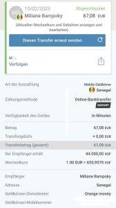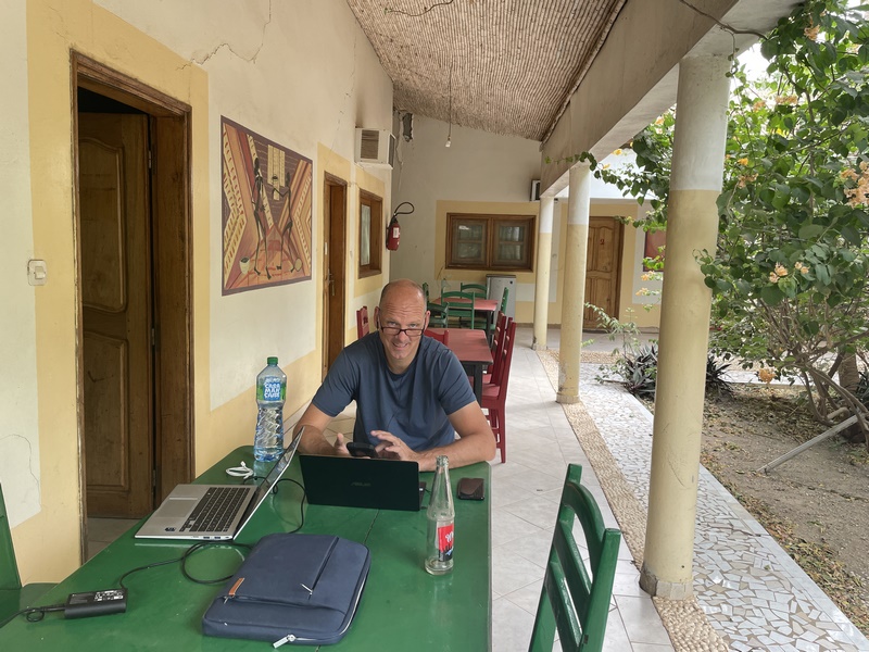 Die insgesamt 85 Tageskilometer waren nervig und anstrengend. Weil wir länger im Airbnb geblieben sind als ursprünglich geplant und es dort weit und breit keinen Geldautomaten gab, waren wir mit Bargeld knapp. Um die zusätzlichen Nächte und das dazugehörige Frühstück zu bezahlen, hatten wir zwar noch genug Bargeld, hätten dann aber nicht mehr tanken können, um von dort weg zu kommen. Eigentlich hatten wir für solche Fälle die App „tap tap send“, mit der man vom deutschen Bankkonto auf viele, viele mobile Wallets afrikanischer Anbieter Geld schicken kann. Weltweit (außer in… Ihr wisst schon) wird ja mittlerweile über solche mobilen Geldbörsen per QR Code gezahlt und international Geld verschickt. Banken braucht man nicht mehr. Man hat ein Guthaben auf dem mobilen Wallet, das man in fast jedem Krämerladen in Bar ein- oder auszahlen lassen kann. Mit dem Guthaben zahlt man alles und überall und mit der App konnten wir das auch. Theoretisch, denn nun sind unsere beiden Konten auf Lebenszeit gesperrt. Um solche „riskanten Zahlungen“ von einem deutschen Konto aus zu tätigen, muss man nämlich zwingend in Deutschland sein. Wir hatten keinen VPN an und das brach uns das Genick. Gut, dass es Western Union gibt! Die haben nicht so viele mobile Wallets in Afrika im Angebot wie die andere App, aber unser Gastgeberin hatte zufällig eine der beiden Möglichkeiten. Puh! Das sind so die kleinen Dinge, die nebenbei ganz schön viel Zeit und Nerven kosten.