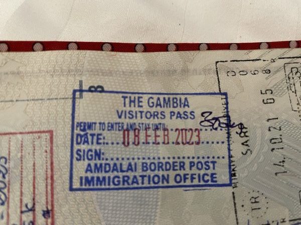 Nach dem Frühstück waren es nur 23km bis zur Grenze. Angeblich super korrupt, angeblich wisse keiner, wie ein Carnet zu stempeln ist, angeblich koste jeder Stempel ein Bestechungsgeld, angeblich, angeblich, angeblich. Natürlich war es bei uns anders, wie immer. Komisch, oder? Das Carnet wurde professionell gestempelt, kein einziger Stempel hat Bestechungsgeld gekostet und nur ein Mal hat ein Senegalese versucht, Jans Führerschein und Fahrzeugpapiere „gegen Gebühr“ wieder auszuhändigen. Es blieb beim Versuch. Jan nahm seine Papiere und ging. Keine Quittung, kein Geld. Eigentlich ganz einfach und uns unverständlich, warum andere Reisende bereitwillig zahlen und dann natürlich für jeden weiteren Stempel abgezockt werden. Selbst versursachte Probleme, wie meist.