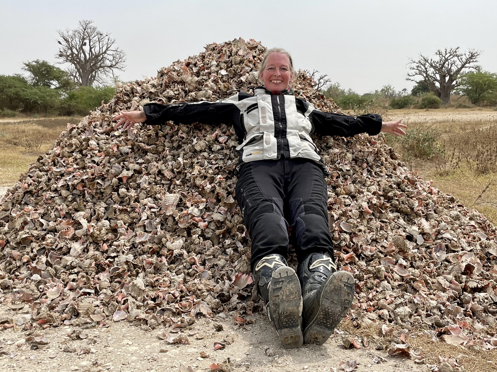Wir fuhren einfach ins große Gewimmel des Fischereihafens hinein. Chaos total. Dreck überall, der Gestank nach Fischabfall, überall reges Treiben und haufenweise Fisch und Muscheln. Frisch und getrocknet. Und Muschelschalen. Die Müllberge der Muschelschalen türmen sich nicht nur im Hafen, sondern auch in der Landschaft auf. Überall „Muschel-Müll“! Wie sollten wir in all dem Durcheinander ein Boot finden? Ich marschierte in ein Lädchen hinein. Der Junge hinterm Tresen verstand nur Bahnhof und kein Französisch. Ob ich Wolof spreche? Nein, leider nicht. Aber er rief jemanden an, der Französisch konnte.