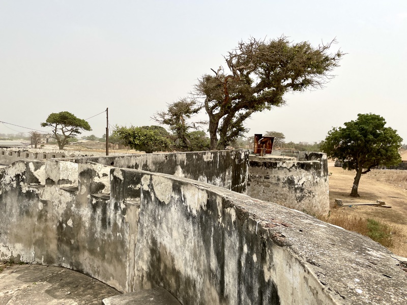 Auf dem Weg nach Banjul schauten wir uns noch die Festung „Bullen“ an. Die einzige Festung weltweit, die dazu errichtet wurde, um den Sklavenhandel zu unterbinden. Wir bekamen eine Führung (als einzige Besucher) durch die kleine, unter UNESCO Weltkulturerbe stehende Anlage. Das Museum ist gerade wegen Termitenbefall geschlossen und die Ausstellungsstücke in einer Art „Garage“ gesichert. Wir bekamen alles gezeigt und erklärt und erfuhren auch, dass die Regierung auf Geld von der UNESCO warte, um das Museum termitenfrei machen zu können, aber da käme nichts. Nachdem wir die UNESCO Weltkulturerbestätten in Mauretanien und nun auch hier mit exakt den gleichen Geschichten gesehen haben, fragen wir uns wirklich, was denn dieser UNESCO Schutz überhaupt bringt, wenn nicht mal Geld für einen Kammerjäger gegen Termiten da ist oder für einen Bagger, um Chinguetti vor dem Erg zu retten oder ein paar Schränke für die Bibliotheken von Chinguetti und Tichtitt..