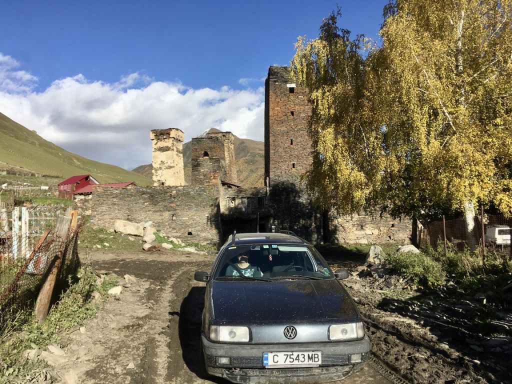 In Ushguli drehten wir einfach wieder um und fuhren den ganzen Matsch wieder zurück, denn wir hatten in Mestia ein Zimmer auf einem Hof reserviert, auf dem wir vor drei Jahren schon übernachtet hatten: ganz oben in Mestia, am Ende einer unglaublich steilen Kopfsteinpflasterstraße gelegen mit allerbester Aussicht auf den Ort voller Wehrtürme. Wir hatten den Familienbetrieb damals in der App iOverlander als Übernachtungstipp eingestellt, jedoch hatten andere Reisende einen für die Familie vernichtenden Hinweis ergänzt: nur mit Allradfahrzeug zu erreichen! Hans bewies, dass das Quatsch ist. Die Familie selbst fährt den weltberühmten Geländewagen Toyota… Prius. Schade, dass Ängste mancher Reisender das Geschäft solcher Familienbetriebe be/verhindern!