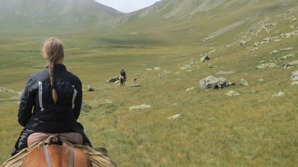 Unsere Oberschenkel brannten und zitterten, 2500 Höhenmeter im freien Fall bergab war eine Belastung, die wir bisher nicht kannten. Für die letzten etwa 500 Höhenmeter durfte ich aufsitzen. Und auch nicht wieder absitzen, denn unser Guide verstand nicht, dass ich meinen eigenen zwei Füßen mehr traute als mehr als 2m über dem Boden vier Pferdehufen zu vertrauen. Doch Nischa tänzelte wie eine Ballerina dem Tal entgegen und bald saßen wir alle drei wieder im Sattel und vertrauten unseren tierischen Freunden.