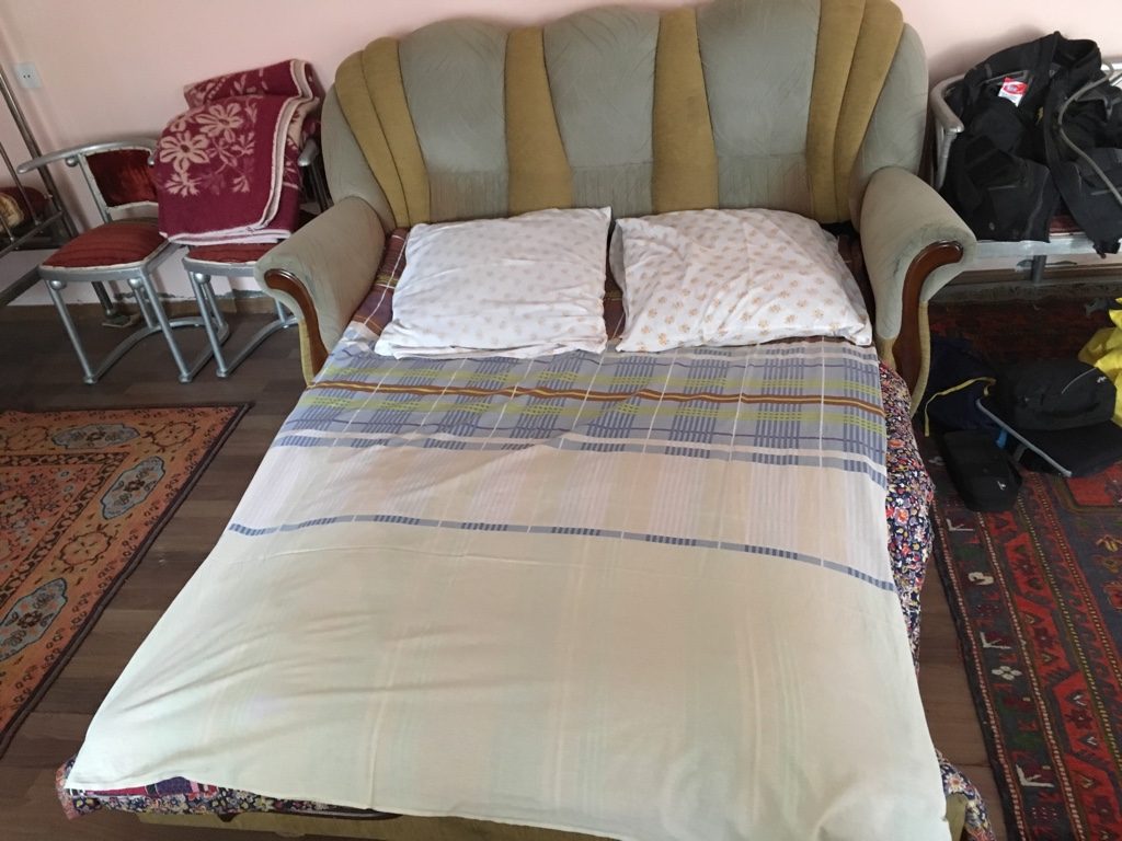 Unsere Unterkunft war ein Volltreffer, weswegen aus 2 Nächten 6 wurden. Unser Gastgeber, Ruslan, war aus vollem Herzen gastfreundlich und unsere anfängliche Skepsis verflog schnell, als wir merkten, wie ernst er es meint mit seiner Gastfreundschaft. Zur Begrüßung gab es Tee, er teilte seine Vorräte, frische Milch, Eier, Käse und Sirup vom Bauern und lud uns 2x abends ein, mit ihm auszugehen.
