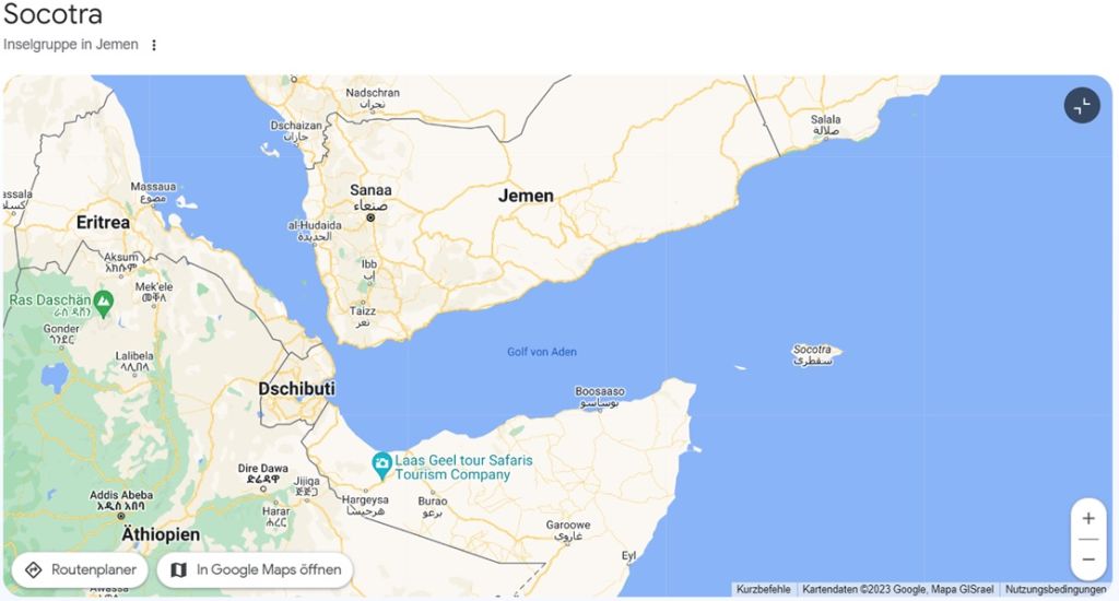 Socotra ist eine Insel vor dem Horn von Afrika, die zum Jemen gehört, derzeit aber von den VAE verwaltet wird. Die Insel liegt so isoliert im Ozean, dass sich dort einzigartige Flora, Fauna und Traditionen entwickeln konnten. 37% aller Pflanzen der Insel sind endemisch, kommen also nur dort vor. Deswegen nennt man Socotra auch „Galapagos des Indischen Ozeans“. Bis zum Bau des Flughafens 2008 war die Insel nur per Schiff zu erreichen und das auch nur wenige Monate im Jahr, da die Stürme des Monsuns es auch moderner Schifffahrt unmöglich machen, die Insel während des Monsuns anzulaufen. Bis heute ist es nicht ganz so einfach, nach Socotra zu kommen.