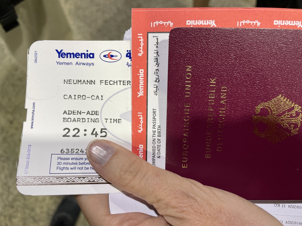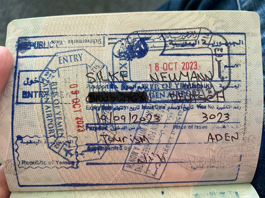 Wie gesagt: wer nach Socotra möchte, muss es wirklich wollen. Bis auf die Britin waren wir alle schon ein paar Tage im Voraus nach Kairo angereist. Von dort ging es um Mitternacht nach Aden, wo wir nach 3:15 Stunden mitten in der Nacht ankamen und erstmal die Einreiseformalitäten erledigen mussten. Die Agentur hatte für uns alle nur „Entry Visa“ erreicht, die bei Ankunft als Touristenvisa in den Pass gestempelt werden mussten. Und das brauchte seine Zeit, in der wir hundemüde in diversen Wartesälen hingen.