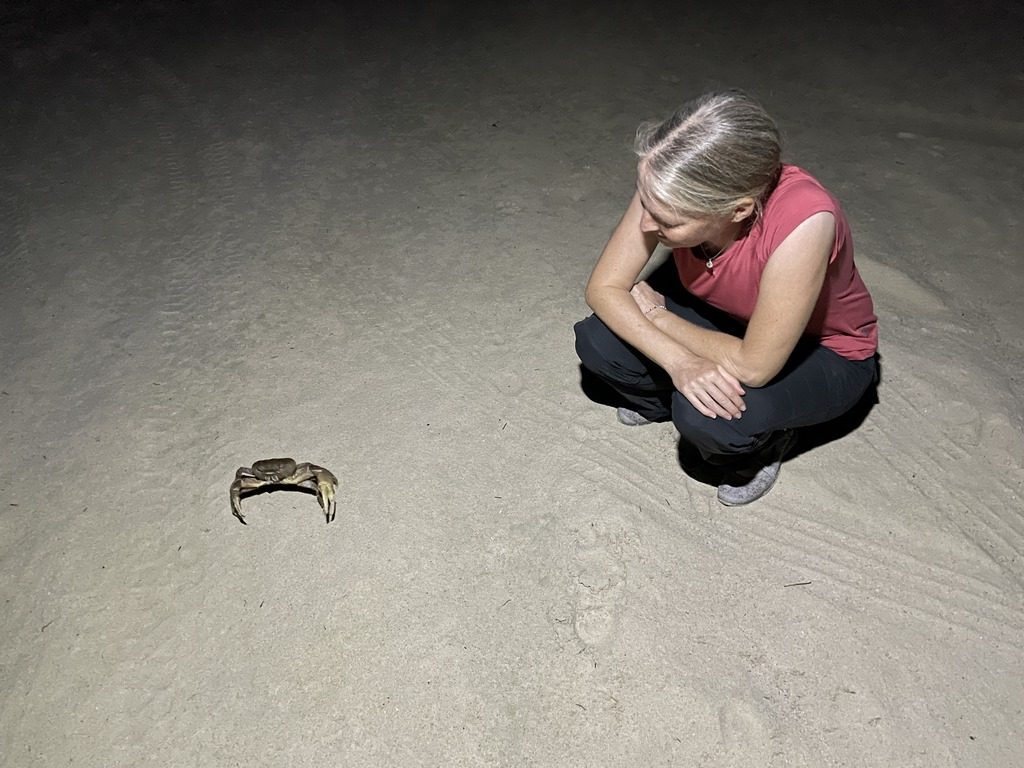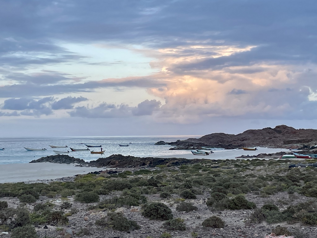 Bis wir zurück im Camp waren, hatte die Crew schon das Abendessen vorbereitet. Und wieder gab es eine Überraschung, die wieder frisch auf dem Lagerfeuer zubereitet wurde: Krebse! Schwierig, an das Fleisch in den Scheren und dem Körper zu kommen, wenn man nur eine Gabel hat, aber auch hier lernten wir: Krebse essen ist auf Socotra nix Besonderes, wenn man nicht alles Fleisch aus Scheren oder Beinen herauslösen kann, stellt man den Teller einfach auf den Boden für die Katze und nimmt sich den nächsten Krebs. Wir sahen, dass Kinder am Strand Krebse sammelten und erkannten: Alltagsessen, kein Luxus. Für uns trotzdem besonders!