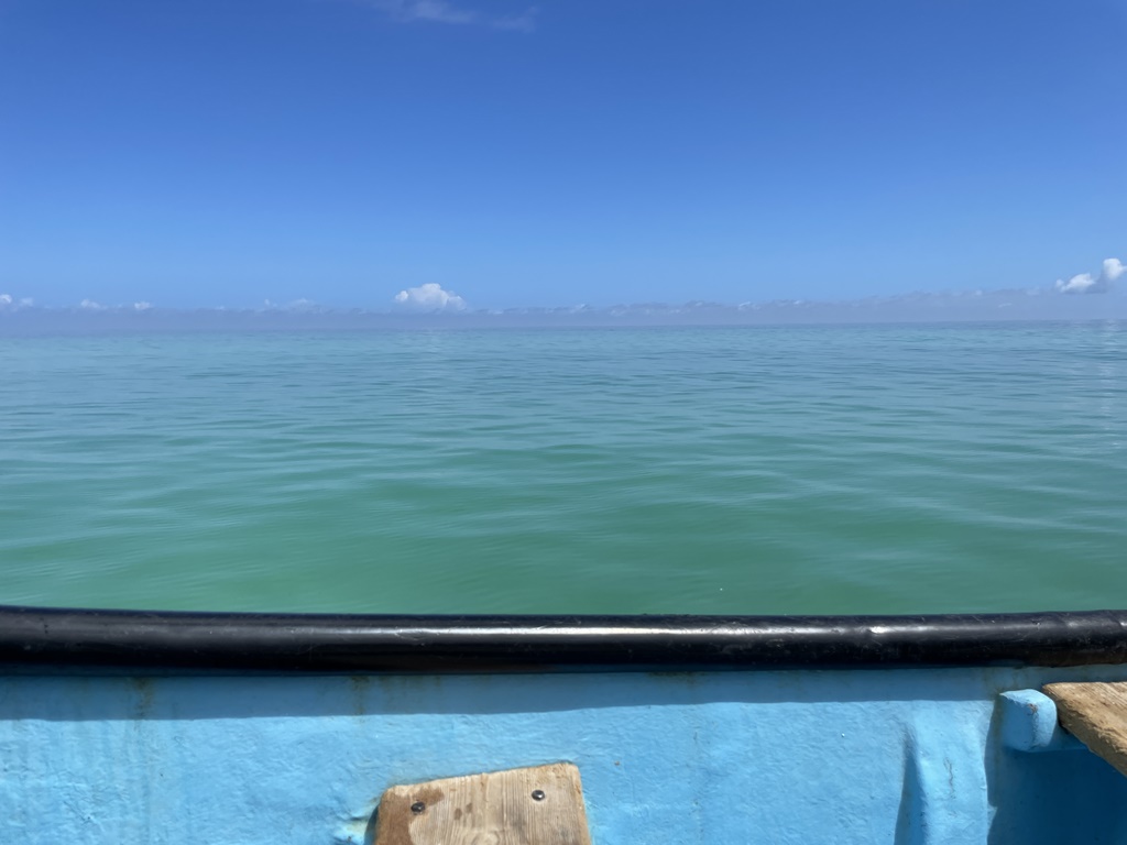 Dann fuhren wir „richtig“ raus aufs Meer und fingen an, eine Angelschnur mit rohem Fisch und Bleigewicht auf den Meeresgrund abzulassen. Es war zwar erst 8 Uhr morgens, aber weil kein Wind ging, grillten wir in der Sonne auf dem Wasser und schwitzten aus allen Poren. Wohl ein Grund, warum Profi-Fischer zum Sonnenaufgang draußen sind.