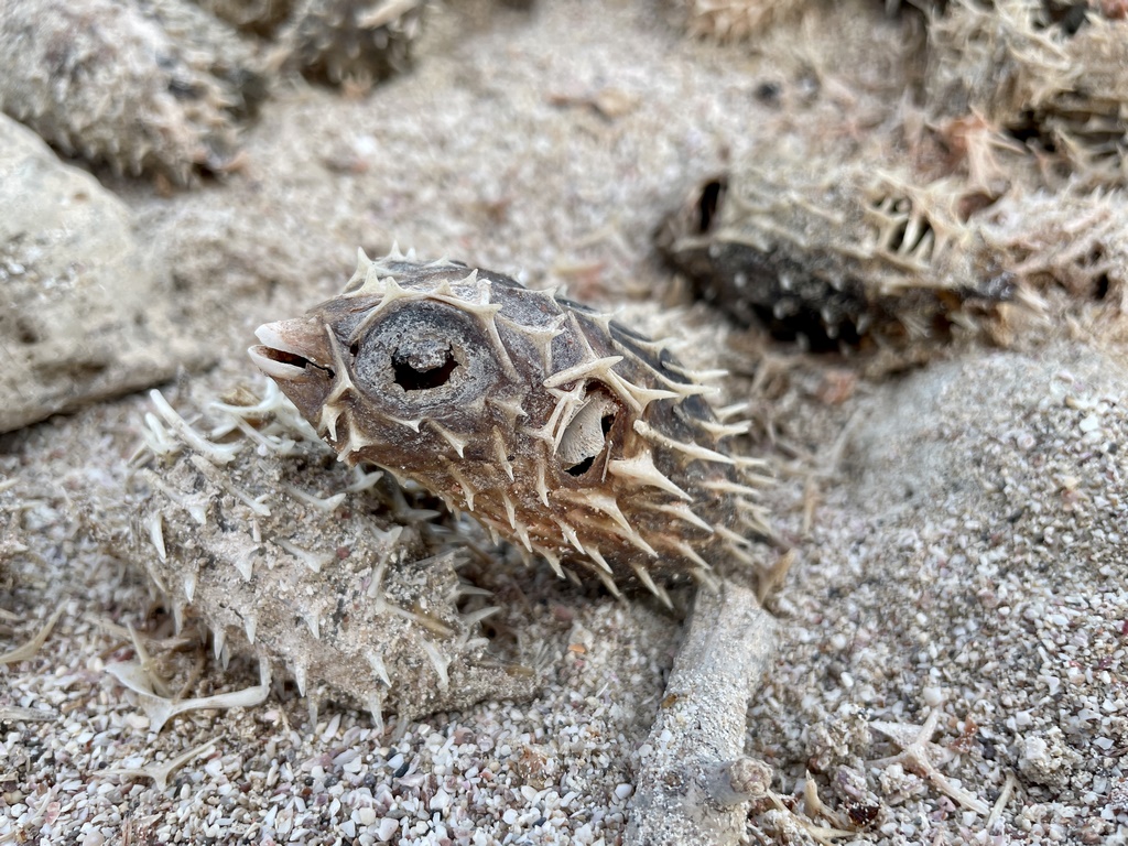 Der Strand war übersäht mit toten Kugelfischen und ihren Stacheln, die während des letzten Monsuns hier angeschwemmt wurden. Majestätisch stolzierten riesige Raubvögel zwischen all dem „Trockenfisch“ herum und wir machten Fotos an einem Walskelett. Ein wenig skurril aber gleichzeitig schön wild, der Ort!