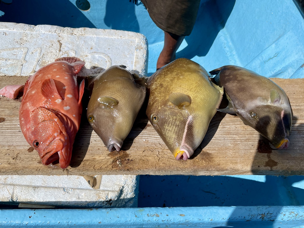 Wir hatten alle Glück und jeder (sogar unser Koch als blutiger Angel-Anfänger) fing einen Fisch. Mit mehr oder weniger Verlust an Angelhaken und Köder. 😊 Ich fing sofort einen Speisefisch, der Mexikaner auch, unser Koch einen wunderschönen bunten Fisch und der Profi-Fischer legte noch den einen oder anderen hübschen Fisch dazu.