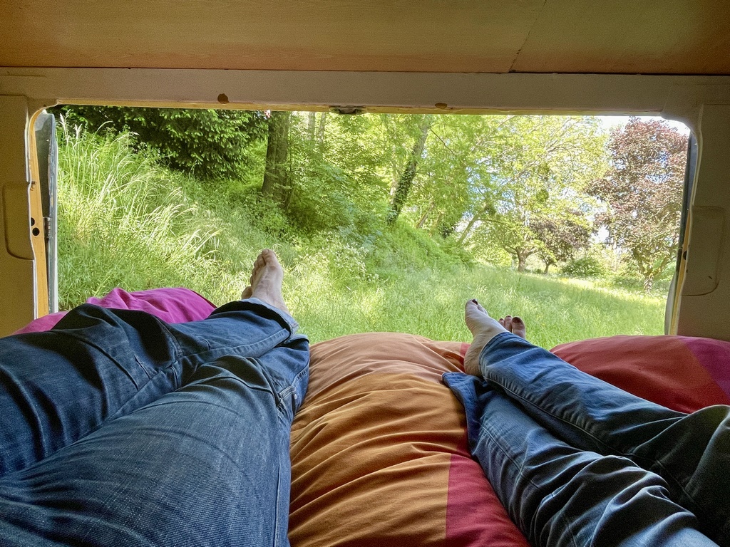 Ich bin seit 2008 „Vanlifer“ (obwohl das damals noch nicht so hieß, wenn man mit Bett im Bus wochenlang gereist ist) und vermisse die 12 Jahre sehr, in denen man einfach nur ein Mensch mit VW-Bus war und nicht eine nervige, respektlose Spezies, die zu Tausenden über Westeuropa herfällt und die Einheimischen bis zur Weißglut nervt. Wir hatten im Winter 2021/22 in Skandinavien und dem Baltikum schon ziemlich Last und jetzt war es nicht besser. Das liegt aber auch daran, dass wir Verbotsschilder respektieren und uns an Regeln halten und es jetzt in der Nebensaison schon schwer war, insbesondere in Frankreich legale Stellplätze zu finden, die nicht schon wegen Überfüllung geschlossen waren. Wir sind dann wo möglich auf Bauernhöfe ausgewichen und damit buchstäblich gut gefahren.
