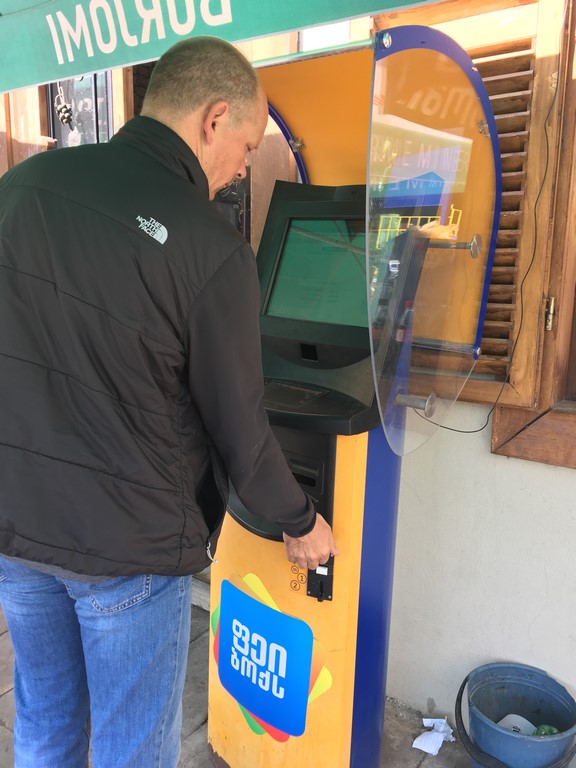 Um Korruption zu verhindern, kann man Knöllchen in Georgien nicht direkt bei der Streife bezahlen, sondern muss dazu zu einer Paybox. Bei einer Paybox kann man (fast) alles machen: Strom, Versicherungen, Steuern, Bußgelder und mehr bezahlen, Handyguthaben aufladen, Versicherungen abschließen, auf sein Wallet mit Kryptowährung zugreifen und noch mehr Finanzielles regeln. Wir hatten die Payboxen in den letzten Monaten immer genutzt, um unser Internetguthaben auf dem Handy (mit Münzgeld!) aufzuladen.