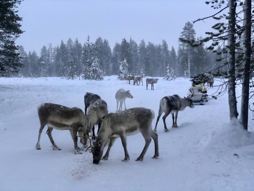 Während ich das hier aufschreibe, ist es Mitte Januar oberhalb des Polarkreises bei 1 Grad plus und der Klimawandel zeigt sich: der Schnee schmilzt ganz seicht vor sich hin und bildet unter der Schneedecke auf dem gefrorenen Boden eine Eisschicht, die das Rentier nicht zerstoßen kann, um an das darunterliegende Futter zu kommen. Auch dies ist ein Grund dafür, dass immer mehr skandinavische Rentiere im Winter nicht mehr in Freiheit leben, sondern in Gehegen. In der Mongolei wirkt sich der Klimawandel genauso aus mit gleichen Folgen. Der Unterschied: der mongolische Rentiernomade hat keinen Privatwald, in dem er ein Gehege bauen kann, er hat kein Geld für Kraftfutter und Heu, denn er ist Rentierbesitzer in Subsistenzwirtschaft und nicht um daraus Profit zu schlagen. Leider verhungern in den letzten Wintern deswegen viele Rentiere. Der finnische Rentierbesitzer, in dessen Herde wir vor einer Woche übernachtet haben, hat im Wald eine Art Futterstelle eingerichtet. So bleiben die Tiere frei, kommen aber trotzdem über den Winter, ähnlich wie wenn in Deutschland ein Förster im Wald Rehe mit Eicheln etc. füttert. Für uns ein annehmbarer Kompromiss.